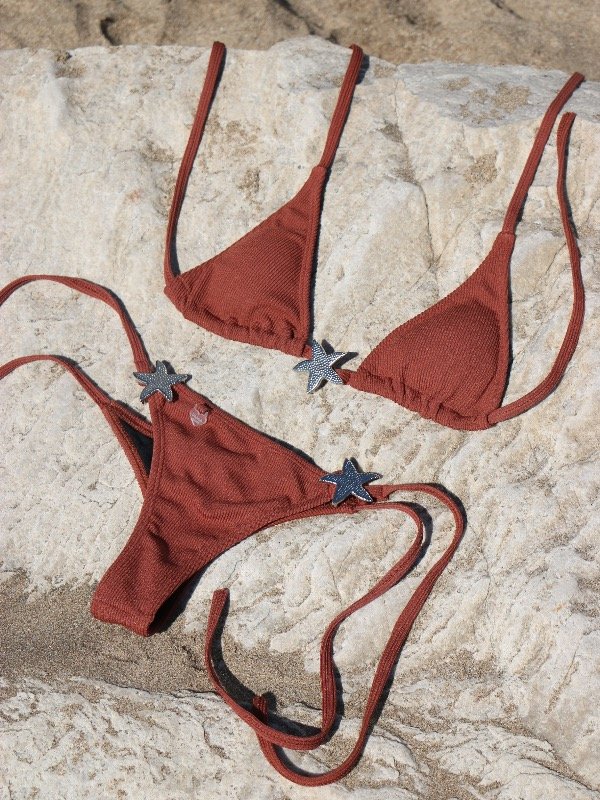 Corpiño triángulo para atar, con detalle de estrella de mar en el centro, tazas soft desmontables.