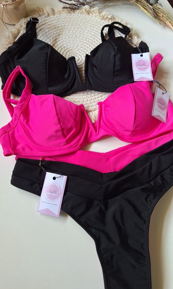 Corpiño de aro, con detalle en V en el escote , breteles regulables, espalda para atar y taza soft desmontable.