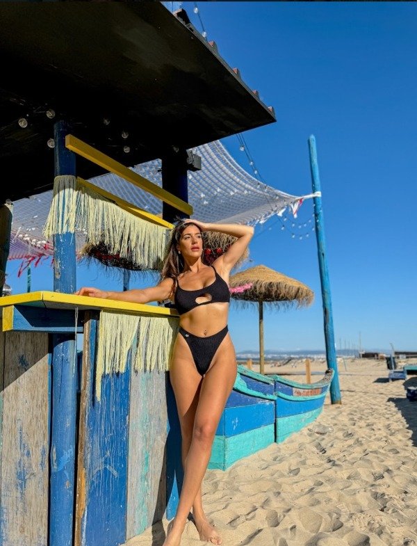 Corpiño tipo top, con detalle de recorte en el escote, espalda para atar, tazas soft desmontables y breteles regulables.