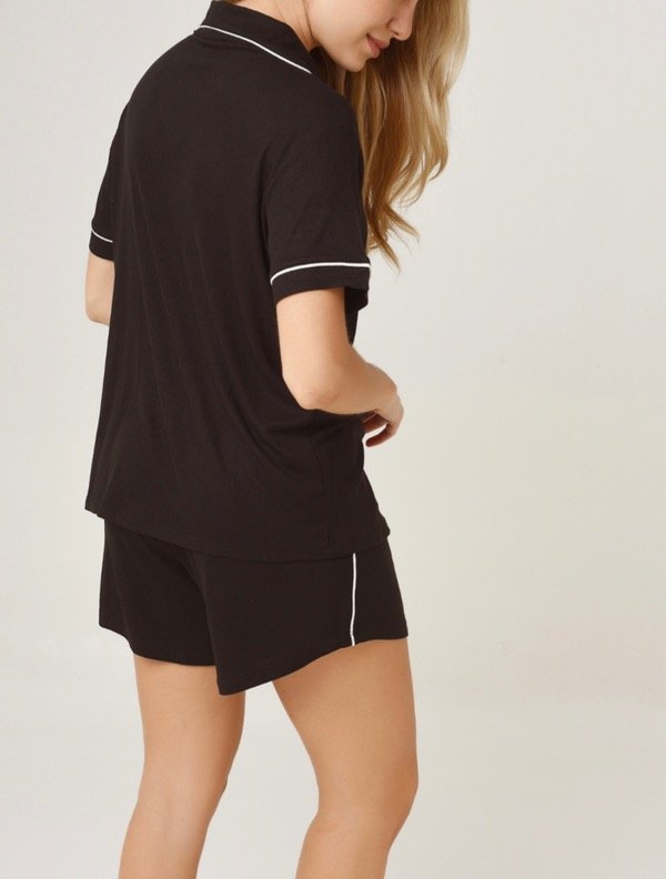 Nuestro pijama camisero manga corta ESTAMBUL es elegante y descontracturado a la vez! Está confeccionado en morley viscosa bastón fino, su corte es holgado y el short es de tiro medio. También cuenta con un bolsillo en la camisa y está integramente envivado a contratono! Divino! Para estar super canchera todo el dia y toda la noche!